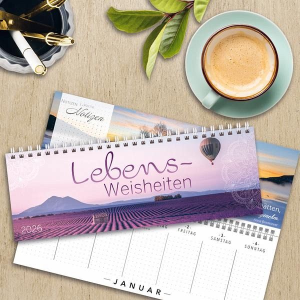 Aufstellbarer Tischkalender; Format: 29,8 x 10,5 cm; umweltfreundliches FSC PapierJede Woche auf einer Doppelseite mit Platz für Notizen und spontane IdeenSchulferien und Feiertage (D,A,CH) sowie Vorschau für 2027Mit dekorativem Aufsteller und im trendigen "dotted" Design