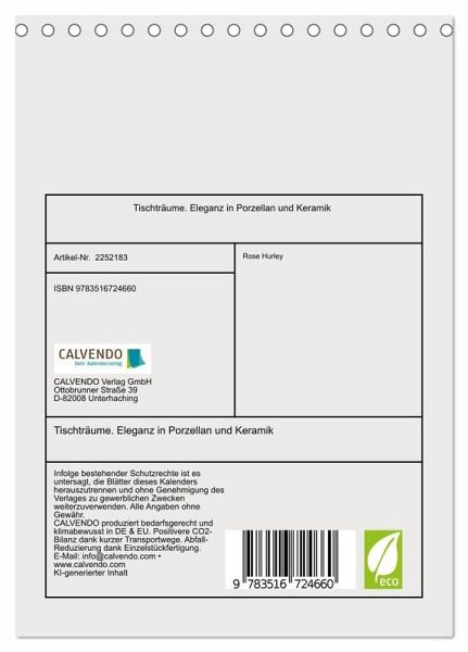 QUALITÄT - Hochwertiger Fotokalender mit 12 wunderschönen Motiven auf lichtbeständigem Bilderdruckpapier, robuste Spiralbindung.NACHHALTIG - deutliche Abfallreduzierung durch bedarfsgerechte Einzelstückfertigung, umweltfreundliches FSC-zertifiziertes Papier, Produktion in Deutschland, klimabewusste Logistik.PERFEKTES GESCHENK - Kalender für Freunde und Familie, für Kinder und Erwachsene, jung und alt, zu Weihnachten, Geburtstag oder zwischendurch.VIELFALT - Bildkalender in verschiedenen Formaten, z.B. DIN A5, DIN A4, DIN A3 sowie DIN A2. Ob Naturmotiv, Gemälde oder Fotos, ideal für ein persönliches Wohlfühlambiente.Ästhetische Kompositionen aus feinem Geschirr und kunstvoll gedeckten Tischen von Autor(in): Rose Hurley