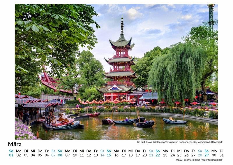 Erleben Sie die magische Atmosphäre des weltberühmten Tivoli in Kopenhagen das ganze Jahr über mit unserem exklusiven Wandkalender! Tauchen Sie Monat für Monat in die zauberhaften Parkanlagen und Gärten dieses ikonischen Vergnügungsparks ein - festgehalten in 12 atemberaubenden Motiven. Gedruckt auf hochwertigem, lichtbeständigem Bilderdruckpapier, bringt dieser Kalender die Schönheit Tivolis direkt in Ihr Zuhause. Nachhaltig in Deutschland auf FSC-zertifiziertem Papier produziert, ist er nicht nur ein optisches Highlight, sondern auch umweltfreundlich. Perfekt als Geschenk oder für die eigene Wand - holen Sie sich ein Stück Kopenhagen nach Hause! Hochwertig Erleben Sie ein Jahr voller Eleganz mit unserem Premium-Fotokalender. Jedes der 12 Motive ist auf hochwertigem, lichtbeständigem Bilderdruckpapier gedruckt, um die Lebendigkeit jedes Bildes zu bewahren. Die robuste Spiralbindung gewährleistet Langlebigkeit und einfache Handhabung. Nachhaltig Unser Engagement für die Umwelt spiegelt sich in jedem Exemplar wider. Durch die Produktion auf Abruf reduzieren wir signifikant unseren Abfall. Wir verwenden ausschließlich umweltfreundliches, FSC-zertifiziertes Papier. Stolz gefertigt in Deutschland, achten wir bei unserer Logistik auf Klimaschutz, um unseren ökologischen Fußabdruck zu minimieren. Das ideale Geschenk Dieser Kalender ist das perfekte Präsent für jeden Anlass - ob Weihnachten, Geburtstage oder einfach als liebevolle Aufmerksamkeit zwischendurch. Geeignet für Freunde, Familie, Kinder und Erwachsene gleichermaßen, bereichert er jedes Zuhause mit seiner Vielfalt und Schönheit, unabhängig vom Alter der Beschenkten.