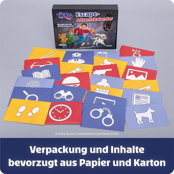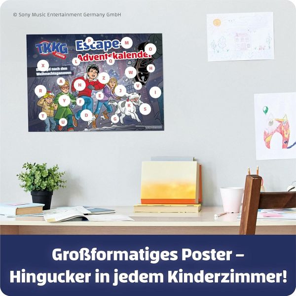 Mit Tim, Karl, Klößchen und Gaby auf Verbrecherjagd! Enthalten sind 24 Rätsel, Hilfsmittel für deren Lösung, ein Sticker-Poster und mehr für eine spannende Adventszeit. Ein aufregender Escape-Adventskalender für TKKG Junior-Fans ab 8 Jahren. Adventszeit, wie wunderbar! TKKG - das sind: Tim, Karl, Klößchen, Gaby und ihr Hund Oskar - genießen die gemütliche Stimmung in der festlich geschmückten Stadt. Doch ist es wirklich so friedlich? Eine merkwürdige Beobachtung auf dem Weihnachtsmarkt führt die Freunde zu einer geheimnisvollen Nachricht. Was steckt dahinter? Die Detektive ermitteln!Ein neuer Fall für TKKG - und du bist dabei! Lies dazu an jedem Tag, wie die Geschichte weitergeht, und löse eine knifflige Aufgabe, um bei der Lösung des Falls weiterzukommen.