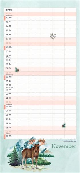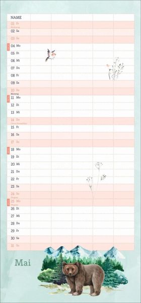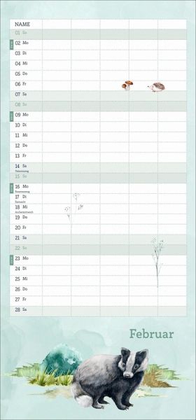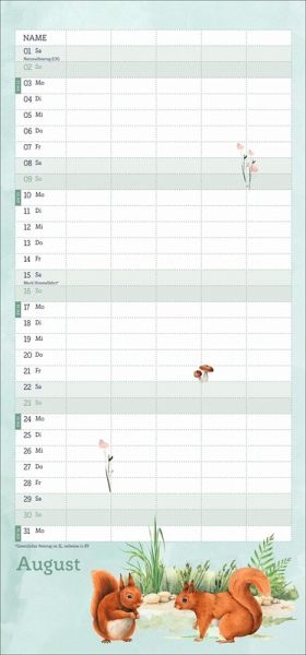 - Eine wunderschöne Organisationshilfe mit Tierillustrationen: Der Tiere des Waldes-Wandplaner 2026, den die ganze Familie lieben wird- Monatskalender mit herzerwärmenden Zeichnungen von Fuchs, Eichhörnchen, Igel und Co. - Ein Blick in die Fauna des Waldes im Wandel der Jahreszeiten: Terminkalender im kompakten 21 x 45 cm Hochformat- Das Raumwunder unter den Familienplanern: 5 Spalten Platz für wichtige Termine, Ferien- und Freizeitaktivitäten - Gemeinsam schöner Pläne schmieden: Die Familien-Wandkalender aus dem Athesia Kalenderverlag