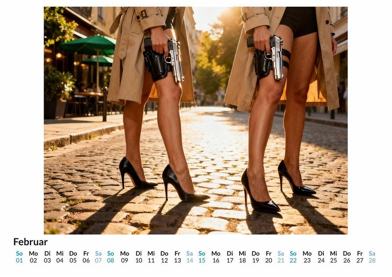 In den Schatten der Metropolen, wo Geheimnisse und Gefahr zu Hause sind, bewegen sie sich lautlos. Zwölf Frauen, deren Aufträge so undurchsichtig sind wie die Nacht, in der sie operieren. Ihre Missionen sind tödlich, ihre Methoden unkonventionell. Dieser Kalender ist ein Blick auf die Momente, bevor sie aus der Deckung treten. Der Kalender ist eine passende Wahl für: * Liebhaber von Spionagegeschichten und düsteren Thrillern. * Sammler von Fotokunst mit einem provokanten Charakter. * Menschen auf der Suche nach einem Wandschmuck, der Gespräche anregt. Monat für Monat zeigt sich eine neue Agentin in einer Szenerie voller Spannung. Der Trenchcoat, Symbol der Tarnung, ist geöffnet und gibt den Blick auf ihre eigentliche Ausrüstung frei: High Heels für den schnellen Abgang und das Pistolenhalfter am Oberschenkel als stete Erinnerung an ihre Profession. Der Kalender "Tödliche Agentinnen" präsentiert eine Serie von Motiven, die eine Geschichte von Macht und Verführung andeuten. Jedes dieser Bilder wurde durch komplexe Algorithmen zum Leben erweckt und zeigt eine Verbindung aus Eleganz und Bedrohung. Der Kauf dieses Kalenders beinhaltet: * Zwölf Monatsmotive im DIN A3 Format. * Ein übersichtliches Kalendarium für die Planung des Jahres. * Eine Spiralbindung zum einfachen Umblättern und Aufhängen. Dieser Kalender ist mehr als ein Zeitmesser; er ist ein Einblick in eine Welt voller verdeckter Operationen und geheimnisvoller Charaktere. Ein ganzes Jahr, begleitet von Frauen, deren wahre Geschichten im Verborgenen bleiben. Es lohnt sich, die einzelnen Motive und ihre Details zu entdecken.