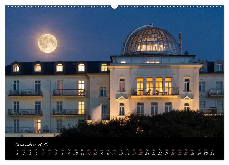 Dezember: Das Strandhotel "Kurhaus" mit Vollmond.