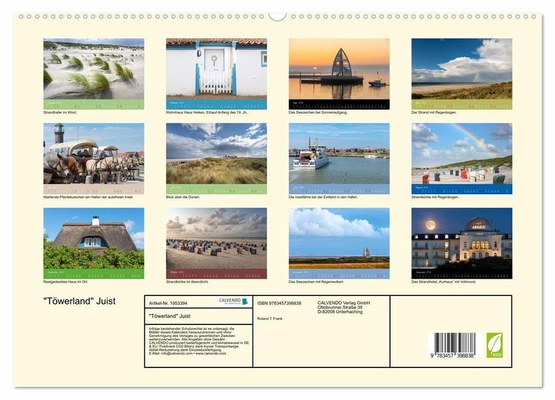 PREMIUM-LINIE - Brillanter Fotokalender mit 12 wunderschönen Motiven, Kunstdruck in Hochglanz in Museumsqualität.QUALITÄT - edle Materialien, stabile Rückwand mit 2 innovativen Einstecktaschen für eine optimale Präsentation an der Wand.NACHHALTIG - deutliche Abfallreduzierung durch bedarfsgerechte Einzelstückfertigung, umweltfreundliches FSC-zertifiziertes Papier, Produktion in Deutschland, klimabewusste Logistik.PERFEKTES GESCHENK - Kalender für Freunde und Familie, für Kinder und Erwachsene, jung und alt, zu Weihnachten, Geburtstag oder zwischendurch.Juist eine ostfriesische Insel in der Nordsee. von Autor(in): Roland T. Frank