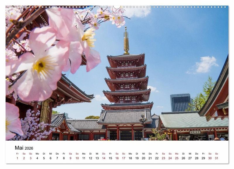 Tokio, die Hauptstadt von Japan, steht für moderne Architektur und verrückte Trends. Doch zwischen den Hochhäusern finden sich wunderschöne, historische Schreine, Tempel und Pagoden. Seit tausenden von Jahren wird hier gebetet und fanden Samurai ihre letzte Ruhestätte. Auch heute noch residiert der Japanische Kaiser in seinem Palast mitten in der Stadt. Dieser Kalender zeigt die farbenprächigen und historischen Wahrzeichen der Stadt.