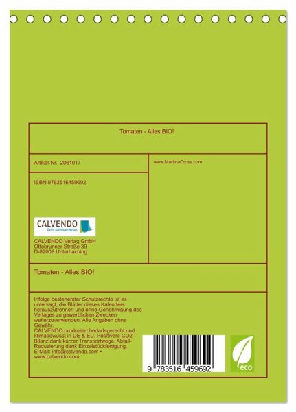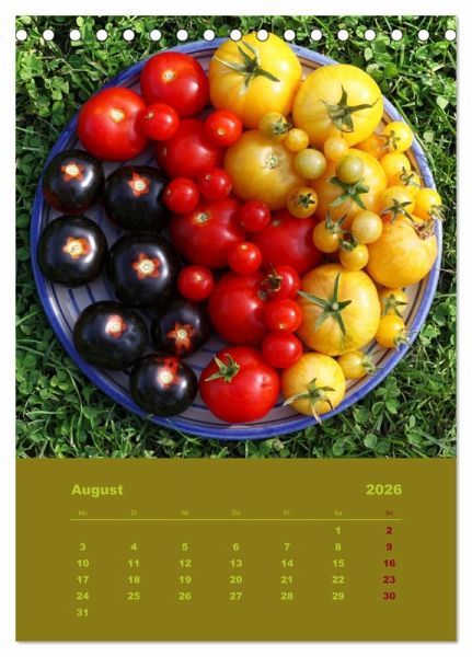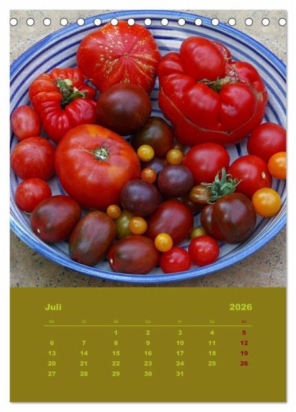 QUALITÄT - Hochwertiger Fotokalender mit 12 wunderschönen Motiven auf lichtbeständigem Bilderdruckpapier, robuste Spiralbindung.NACHHALTIG - deutliche Abfallreduzierung durch bedarfsgerechte Einzelstückfertigung, umweltfreundliches FSC-zertifiziertes Papier, Produktion in Deutschland, klimabewusste Logistik.PERFEKTES GESCHENK - Kalender für Freunde und Familie, für Kinder und Erwachsene, jung und alt, zu Weihnachten, Geburtstag oder zwischendurch.VIELFALT - Bildkalender in verschiedenen Formaten, z.B. DIN A5, DIN A4, DIN A3 sowie DIN A2. Ob Naturmotiv, Gemälde oder Fotos, ideal für ein persönliches Wohlfühlambiente.Wunderbare Tomatenernte aus einem natürlich, biologischen Garten von Autor(in): Martina Cross