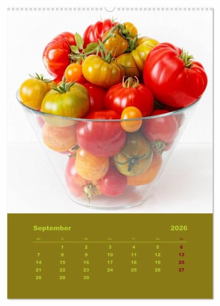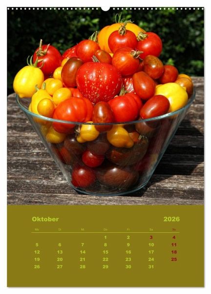 QUALITÄT - Hochwertiger Fotokalender mit 12 wunderschönen Motiven auf lichtbeständigem Bilderdruckpapier, robuste Spiralbindung mit Aufhängebügel.NACHHALTIG - deutliche Abfallreduzierung durch bedarfsgerechte Einzelstückfertigung, umweltfreundliches FSC-zertifiziertes Papier, Produktion in Deutschland, klimabewusste Logistik.PERFEKTES GESCHENK - Kalender für Freunde und Familie, für Kinder und Erwachsene, jung und alt, zu Weihnachten, Geburtstag oder zwischendurch.VIELFALT - Bildkalender in verschiedenen Formaten, z.B. DIN A5, DIN A4, DIN A3 sowie DIN A2. Ob Naturmotiv, Gemälde oder Fotos, ideal für ein persönliches Wohlfühlambiente.Wunderbare Tomatenernte aus einem natürlich, biologischen Garten von Autor(in): Martina Cross