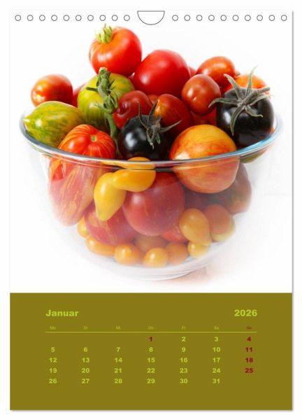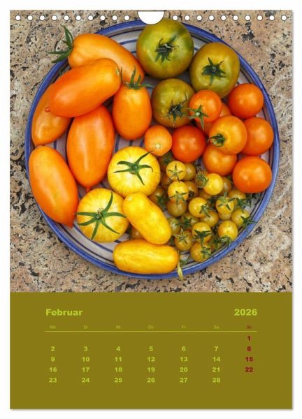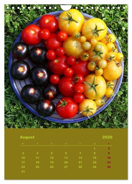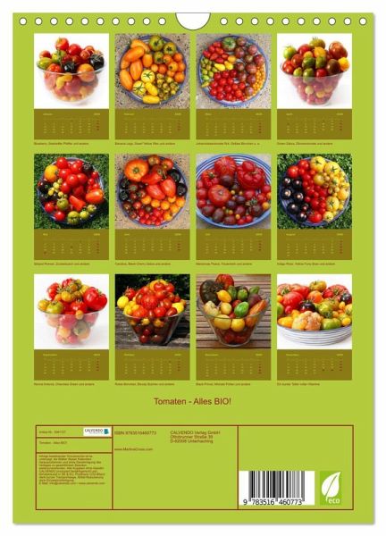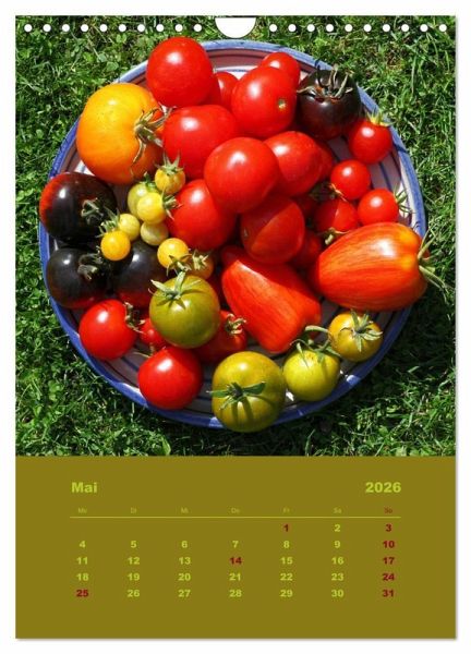 QUALITÄT - Hochwertiger Fotokalender mit 12 wunderschönen Motiven auf lichtbeständigem Bilderdruckpapier, robuste Spiralbindung mit Aufhängebügel.NACHHALTIG - deutliche Abfallreduzierung durch bedarfsgerechte Einzelstückfertigung, umweltfreundliches FSC-zertifiziertes Papier, Produktion in Deutschland, klimabewusste Logistik.PERFEKTES GESCHENK - Kalender für Freunde und Familie, für Kinder und Erwachsene, jung und alt, zu Weihnachten, Geburtstag oder zwischendurch.VIELFALT - Bildkalender in verschiedenen Formaten, z.B. DIN A5, DIN A4, DIN A3 sowie DIN A2. Ob Naturmotiv, Gemälde oder Fotos, ideal für ein persönliches Wohlfühlambiente.Wunderbare Tomatenernte aus einem natürlich, biologischen Garten von Autor(in): Martina Cross