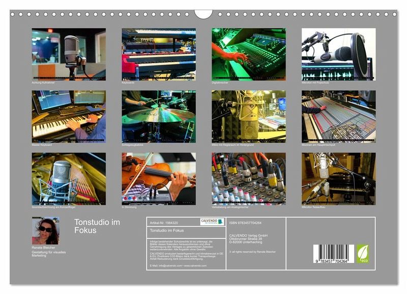 QUALITÄT - Hochwertiger Fotokalender mit 12 wunderschönen Motiven auf lichtbeständigem Bilderdruckpapier, robuste Spiralbindung mit Aufhängebügel.NACHHALTIG - deutliche Abfallreduzierung durch bedarfsgerechte Einzelstückfertigung, umweltfreundliches FSC-zertifiziertes Papier, Produktion in Deutschland, klimabewusste Logistik.PERFEKTES GESCHENK - Kalender für Freunde und Familie, für Kinder und Erwachsene, jung und alt, zu Weihnachten, Geburtstag oder zwischendurch.VIELFALT - Bildkalender in verschiedenen Formaten, z.B. DIN A5, DIN A4, DIN A3 sowie DIN A2. Ob Naturmotiv, Gemälde oder Fotos, ideal für ein persönliches Wohlfühlambiente.Faszinierende Aufnahmen von Musikinstrumenten und Studiotechnik von Autor(in): Renate Bleicher
