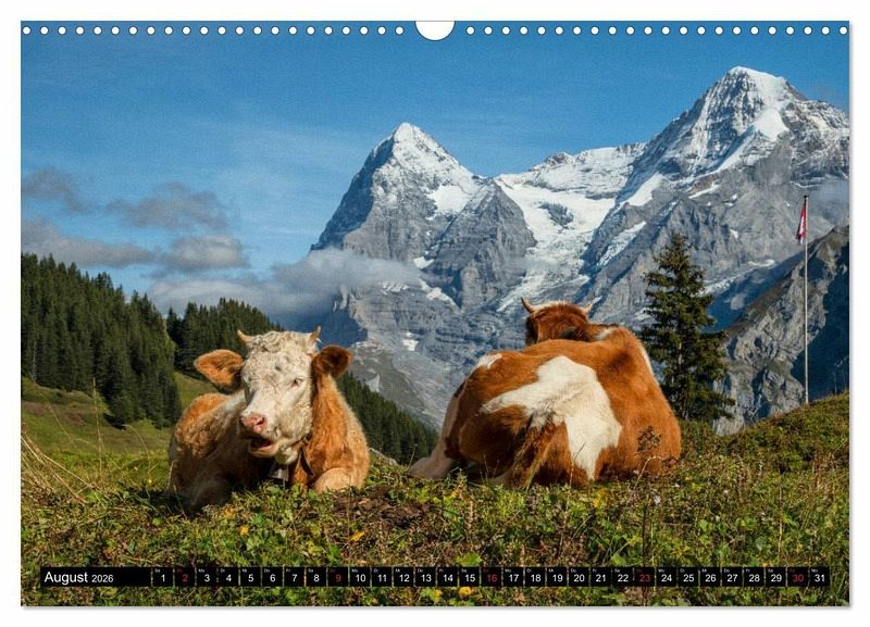 August: Kühe vor dem Eiger und Mönch, Berger Alpen, Schweiz