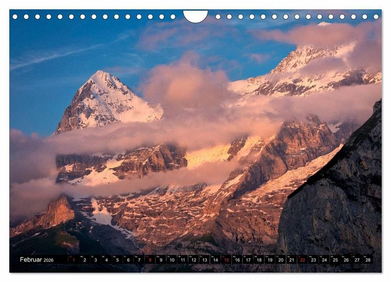 Februar: Eiger und Mönch, Berner Oberland, Schweiz