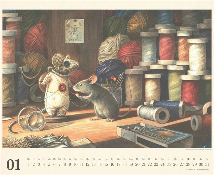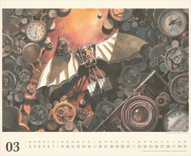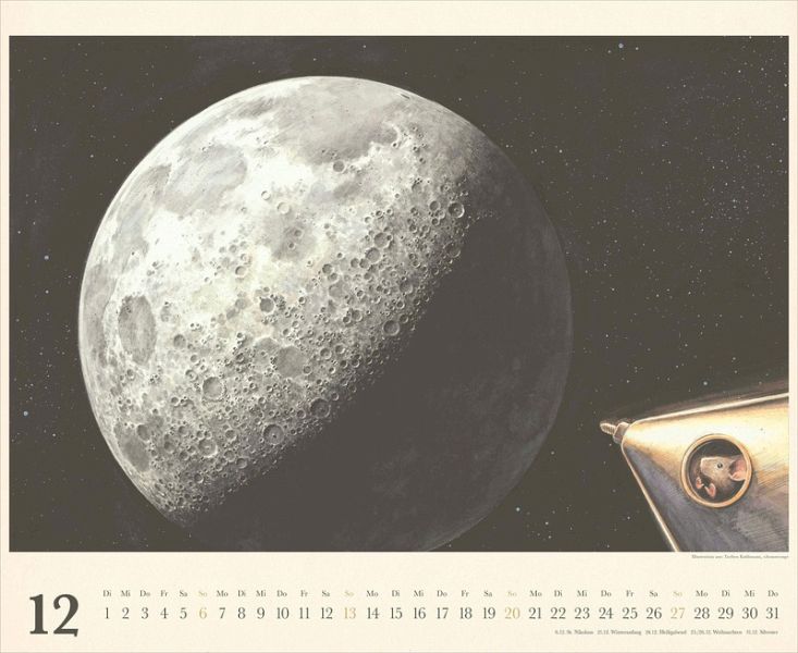 Torben Kuhlmanns fünf Mäuseabenteuer, erschienen im NordSüd Verlag, sind Bilderbücher der Extraklasse. Der Wandkalender zeigt eine Auswahl von 12 Bildern aus "Lindbergh - Die Geschichte einer fliegenden Maus", aus "Armstrong - Die abenteuerliche Reise einer Maus zum Mond" und aus "Edison - Das Rätsel des verschollenen Mäuseschatzes" sowie aus "Einstein - Die fantastische Reise einer Maus durch Raum und Zeit". sowie aus "Earhart - Der abenteuerliche Flug einer Wühlmaus um die Welt".