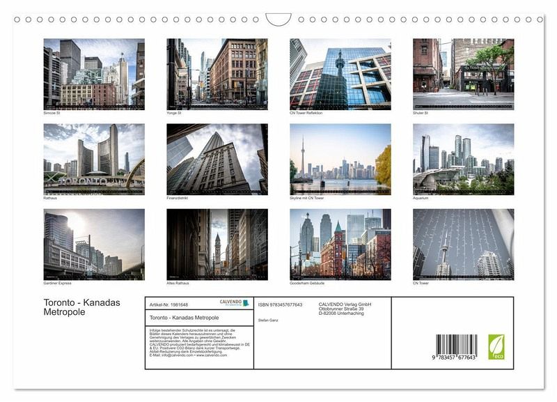 Toronto hat viele Gesichter. Zwölf davon werden in diesem Kalender präsentiert. In stimmungsvollen Bildern lernen Sie die kanadische Stadt und ihre Wahrzeichen kennen.