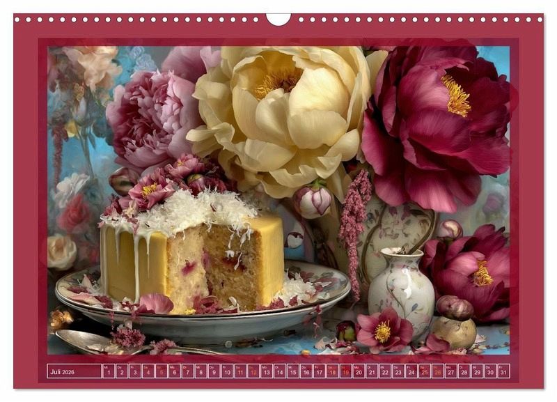 Dieser Kalender zeigt zwölf kunstvoll arrangierte Tortenmotive, die mit liebevollen Details, saisonalen Blumen und feinen Dekorationen verzaubern. Jede Monatsseite präsentiert eine einzigartige Komposition aus Gebäck, Natur und Licht - mal verspielt, mal festlich, stets mit einem Hauch von Poesie. Ein Genuss fürs Auge, der das ganze Jahr über inspiriert und erfreut. Die Motive wurden mithilfe KI-gestützter Bildgestaltung in Szene gesetzt.