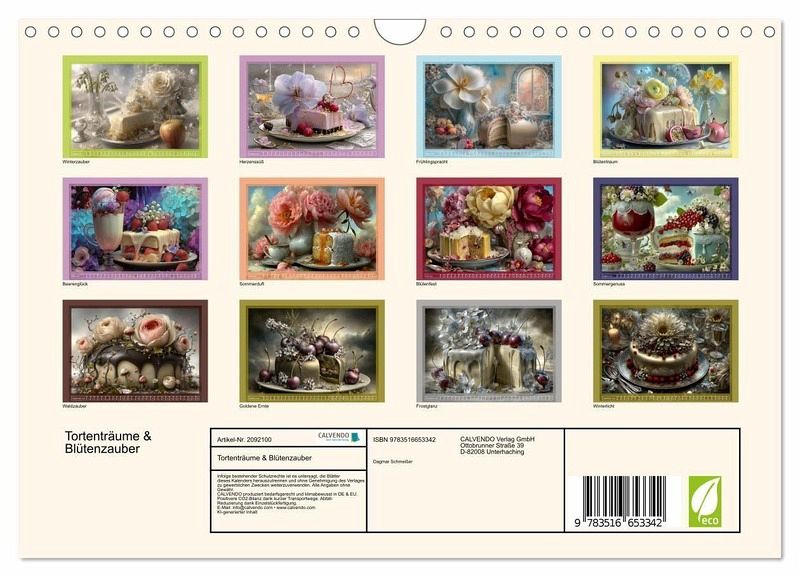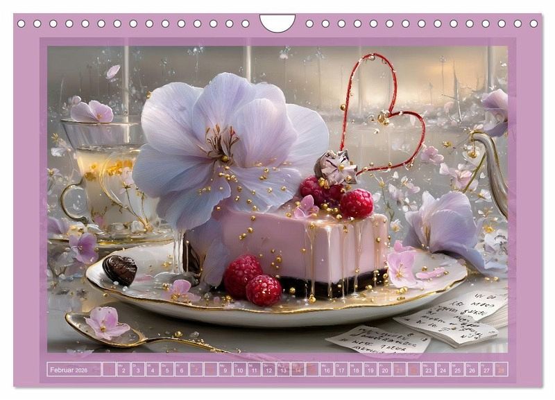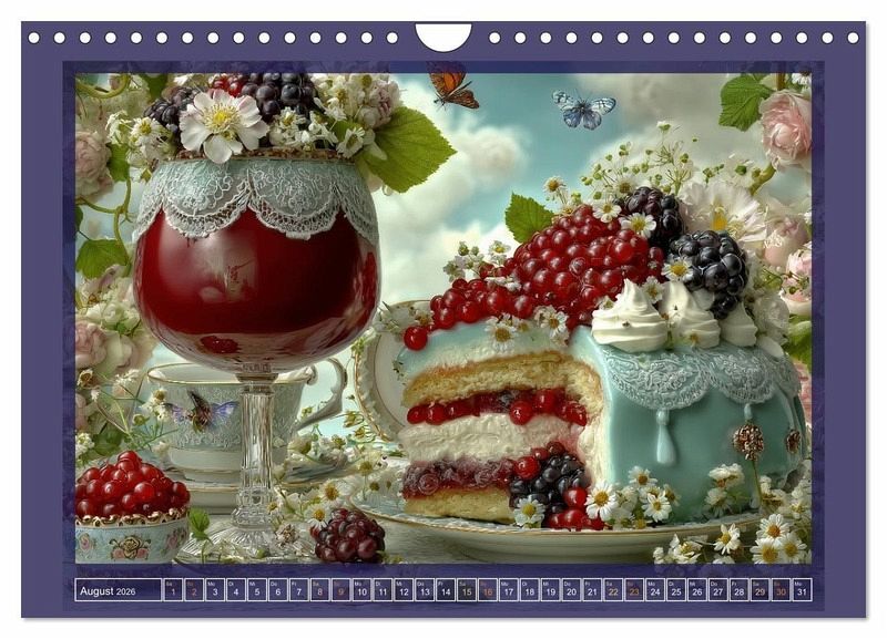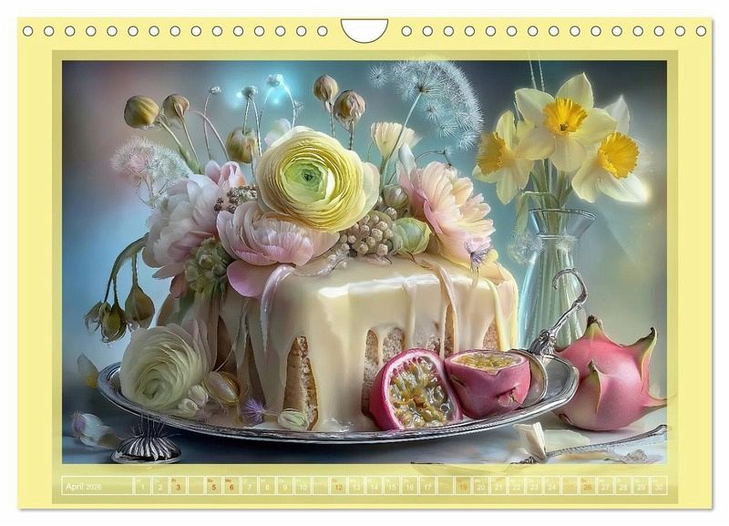 Dieser Kalender zeigt zwölf kunstvoll arrangierte Tortenmotive, die mit liebevollen Details, saisonalen Blumen und feinen Dekorationen verzaubern. Jede Monatsseite präsentiert eine einzigartige Komposition aus Gebäck, Natur und Licht - mal verspielt, mal festlich, stets mit einem Hauch von Poesie. Ein Genuss fürs Auge, der das ganze Jahr über inspiriert und erfreut. Die Motive wurden mithilfe KI-gestützter Bildgestaltung in Szene gesetzt.