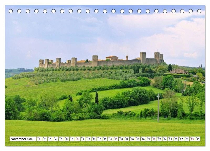 In der schönen Landschaft der Toskana entstanden auch immer schon bedeutende Bauwerke. Einige werden in diesem Kalender vorgestellt - u.a. aus Florenz, Siena und Pisa.