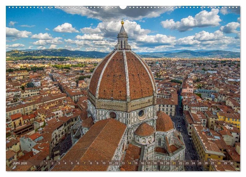 Juni: Die gigantische Kuppel des Doms in Florenz überragt die Stadt - Blick vom Glockenturm