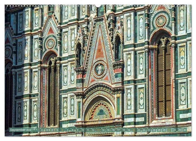 September: Detail der Fassade des Doms in Florenz, interessant ist der Kontrast von rotem und grünem Marmor