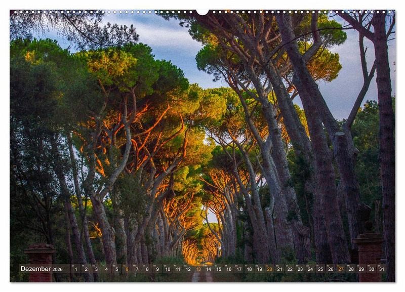 Dezember: Allee von alten Schirmpinien bei San Vincenzo im Süden der Toskana