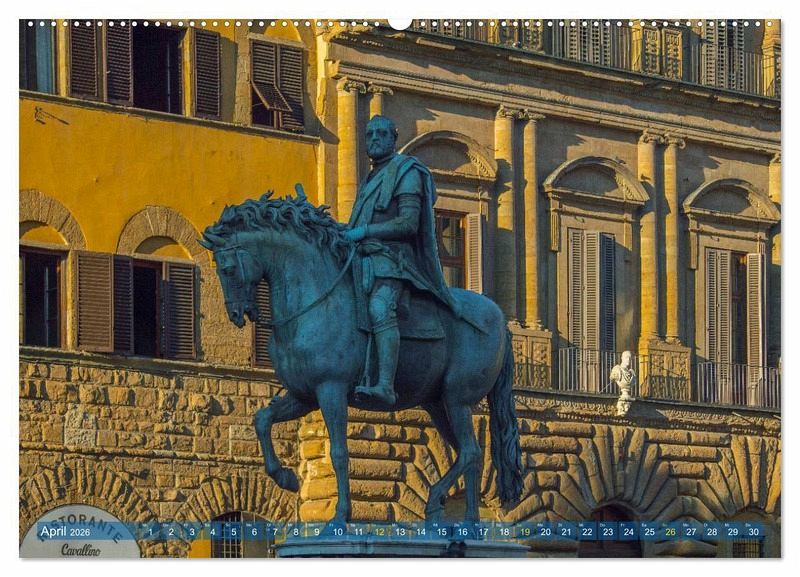 April: Das Reiterstandbild von Cosimo I. de Medici auf der Piazza Signoria in Florenz