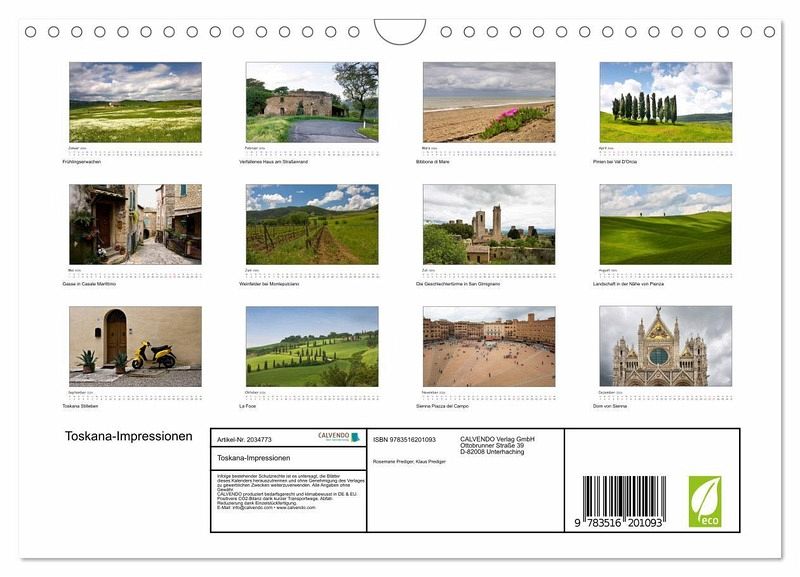 QUALITÄT - Hochwertiger Fotokalender mit 12 wunderschönen Motiven auf lichtbeständigem Bilderdruckpapier, robuste Spiralbindung mit Aufhängebügel.NACHHALTIG - deutliche Abfallreduzierung durch bedarfsgerechte Einzelstückfertigung, umweltfreundliches FSC-zertifiziertes Papier, Produktion in Deutschland, klimabewusste Logistik.PERFEKTES GESCHENK - Kalender für Freunde und Familie, für Kinder und Erwachsene, jung und alt, zu Weihnachten, Geburtstag oder zwischendurch.VIELFALT - Bildkalender in verschiedenen Formaten, z.B. DIN A5, DIN A4, DIN A3 sowie DIN A2. Ob Naturmotiv, Gemälde oder Fotos, ideal für ein persönliches Wohlfühlambiente.Flache Ebenen und sanfte Hügel prägen das Bild der Toskana. von Autor(in): Rosemarie Prediger