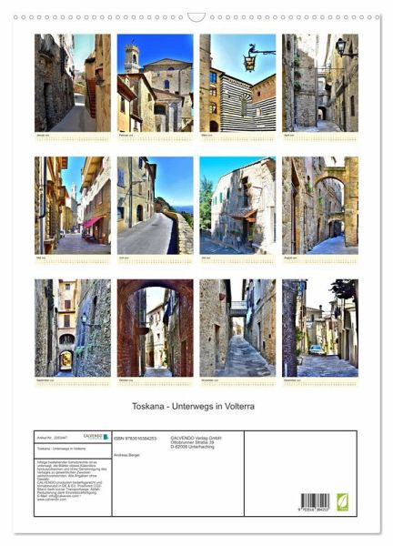 QUALITÄT - Hochwertiger Fotokalender mit 12 wunderschönen Motiven auf lichtbeständigem Bilderdruckpapier, robuste Spiralbindung mit Aufhängebügel.NACHHALTIG - deutliche Abfallreduzierung durch bedarfsgerechte Einzelstückfertigung, umweltfreundliches FSC-zertifiziertes Papier, Produktion in Deutschland, klimabewusste Logistik.PERFEKTES GESCHENK - Kalender für Freunde und Familie, für Kinder und Erwachsene, jung und alt, zu Weihnachten, Geburtstag oder zwischendurch.VIELFALT - Bildkalender in verschiedenen Formaten, z.B. DIN A5, DIN A4, DIN A3 sowie DIN A2. Ob Naturmotiv, Gemälde oder Fotos, ideal für ein persönliches Wohlfühlambiente.Historische Orte der Toskana mit ihren schönen Gassen von Autor(in): Andreas Berger