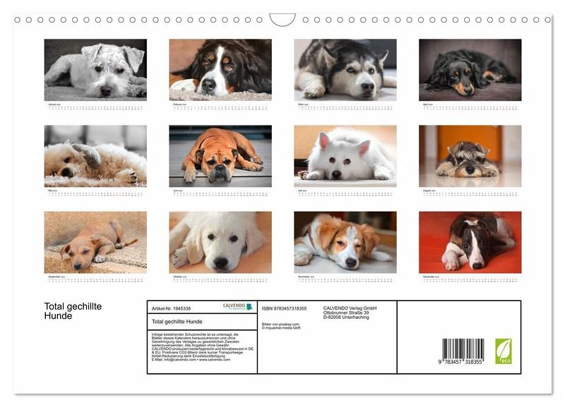 Lassen Sie den Stress des Alltags hinter sich und tauchen Sie ein in die beruhigende Welt unserer entspannten Hunde! Unser liebevoll gestalteter Hundekalender für das Jahr 2025 bringt Ihnen jeden Monat ein neues, zauberhaftes Bild von Hunden, die in den schönsten Momenten der Entspannung eingefangen wurden. Gönnen Sie sich eine Auszeit und lassen Sie sich von der Gelassenheit unserer pelzigen Freunde anstecken! Ideal als Geschenk für Hundeliebhaber oder als kleine Auszeit für sich selbst.