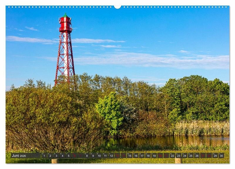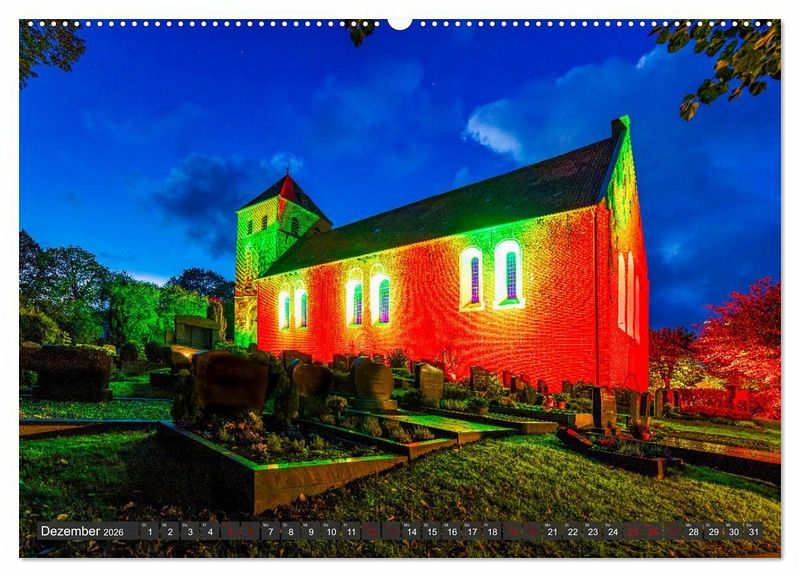 Warum um die ganze Welt reisen? Besuchen Sie bekannte und einzigartige Sehenswürdigkeiten in Ostfriesland, wie z. B. den schiefen Turm von Suurhusen, die Zwillingsmühlen von Greetsiel, das Schloss Evenburg in Leer, den Stahlfachwerkturm Campener Leuchtturm, das schwimmende Leuchtfeuer Amrumbank im Delft von Emden, die Dünen auf den Ostfriesischen Inseln, die Kaiser-Wilhelm Brücke in Wilhelmshaven und vieles, vieles mehr... Die ostfriesische Halbinsel ist ein Land der endlosen Weite, mit einer abwechslungsreichen Landschaft, wo Sie weitere Leuchttürme, Kirchen, Burgen und Schlösser sowie Mühlen entdecken können. Holen Sie sich diesen schönen Kalender zu sich nach Hause.
