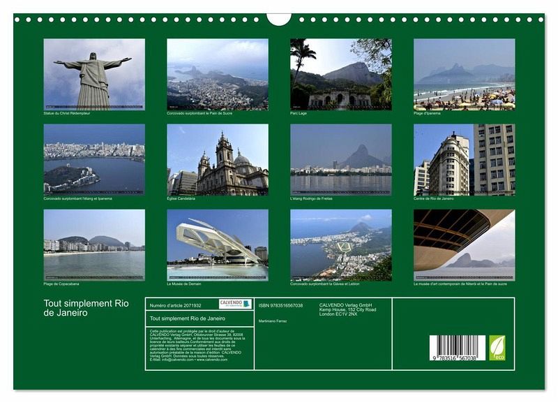 Profitez de la beauté de l'une des plus belles villes du monde sans quitter la maison. Ce calendrier est dédié à la ville de Rio de Janeiro, Brésil, hôte des Jeux Olympiques de 2016.