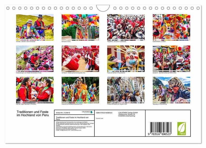 QUALITÄT - Hochwertiger Fotokalender mit 12 wunderschönen Motiven auf lichtbeständigem Bilderdruckpapier, robuste Spiralbindung mit Aufhängebügel.NACHHALTIG - deutliche Abfallreduzierung durch bedarfsgerechte Einzelstückfertigung, umweltfreundliches FSC-zertifiziertes Papier, Produktion in Deutschland, klimabewusste Logistik.PERFEKTES GESCHENK - Kalender für Freunde und Familie, für Kinder und Erwachsene, jung und alt, zu Weihnachten, Geburtstag oder zwischendurch.VIELFALT - Bildkalender in verschiedenen Formaten, z.B. DIN A5, DIN A4, DIN A3 sowie DIN A2. Ob Naturmotiv, Gemälde oder Fotos, ideal für ein persönliches Wohlfühlambiente.Peru - Land der Kulturen und Feste. von Autor(in): Creawes-Photos