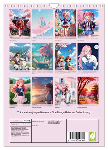 QUALITÄT - Hochwertiger Fotokalender mit 12 wunderschönen Motiven auf lichtbeständigem Bilderdruckpapier, robuste Spiralbindung mit Aufhängebügel.NACHHALTIG - deutliche Abfallreduzierung durch bedarfsgerechte Einzelstückfertigung, umweltfreundliches FSC-zertifiziertes Papier, Produktion in Deutschland, klimabewusste Logistik.PERFEKTES GESCHENK - Kalender für Freunde und Familie, für Kinder und Erwachsene, jung und alt, zu Weihnachten, Geburtstag oder zwischendurch.VIELFALT - Bildkalender in verschiedenen Formaten, z.B. DIN A5, DIN A4, DIN A3 sowie DIN A2. Ob Naturmotiv, Gemälde oder Fotos, ideal für ein persönliches Wohlfühlambiente.Eine visuelle Reise im Manga-Stil: Ein junges Herz auf der Suche nach Freiheit und Selbstfindung, zwischen Träumen und der ersten Liebe von Autor(in): Claudia Pilon