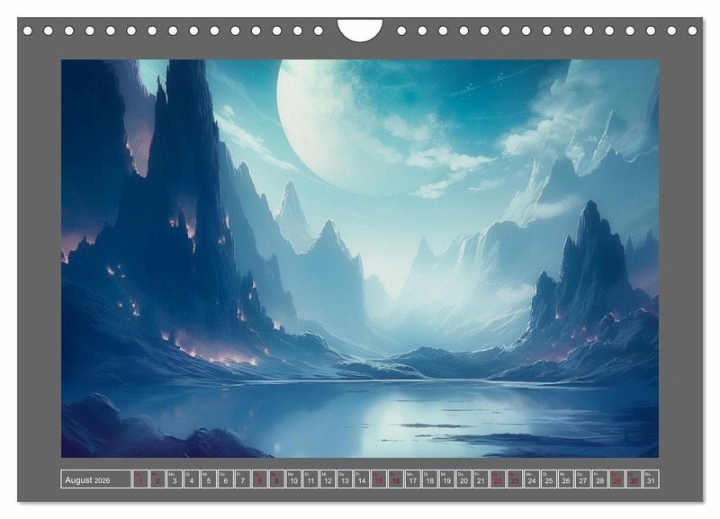 Tauchen Sie ein in die Welt der Träume mit dem neuen atemberaubenden Kalender der Digitalkünstlerin Simone Wunderlich! Jeden Monat enthüllt dieser faszinierende Kalender eine neue fantastische - von KI erstellte und mit Bildbearbeitung verschönte - Landschaft in den beruhigenden Blautönen der Natur. Von majestätischen Ozeanen bis hin zu mystischen Bergen, diese Bilder werden Ihre Sinne verzaubern und Sie auf eine Reise der Entspannung und Inspiration mitnehmen.