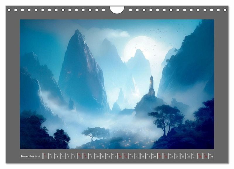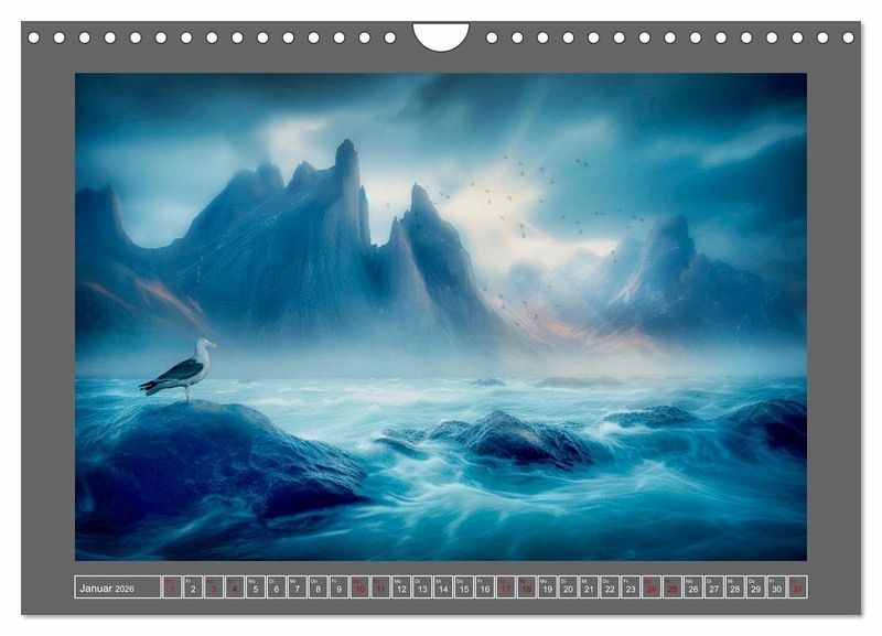 Jeden Monat enthüllt dieser faszinierende Kalender eine neue fantastische - von KI erstellte und mit Bildbearbeitung verschönte - Landschaft in den beruhigenden Blautönen der Natur. Von majestätischen Ozeanen bis hin zu mystischen Bergen, diese Bilder werden Ihre Sinne verzaubern und Sie auf eine Reise der Entspannung und Inspiration mitnehmen.