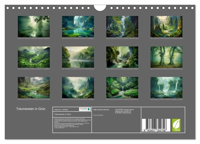 Tauche ein in die erfrischende Welt der Natur mit unserem exklusiven Monatskalender! Jedes atemberaubende Bild wurde von künstlicher Intelligenz in lebendigen Grüntönen geschaffen, um dir das ganze Jahr über eine Oase der Ruhe zu bieten. Lass dich von den kunstvollen Landschaften verzaubern und spüre, wie die beruhigende Farbpalette deinen Alltag erhellt. Mit diesem einzigartigen Kalender holst du dir die Schönheit der Natur direkt an deine Wand. Gönn dir jeden Monat eine Auszeit und entdecke die grüne Seite des Lebens!