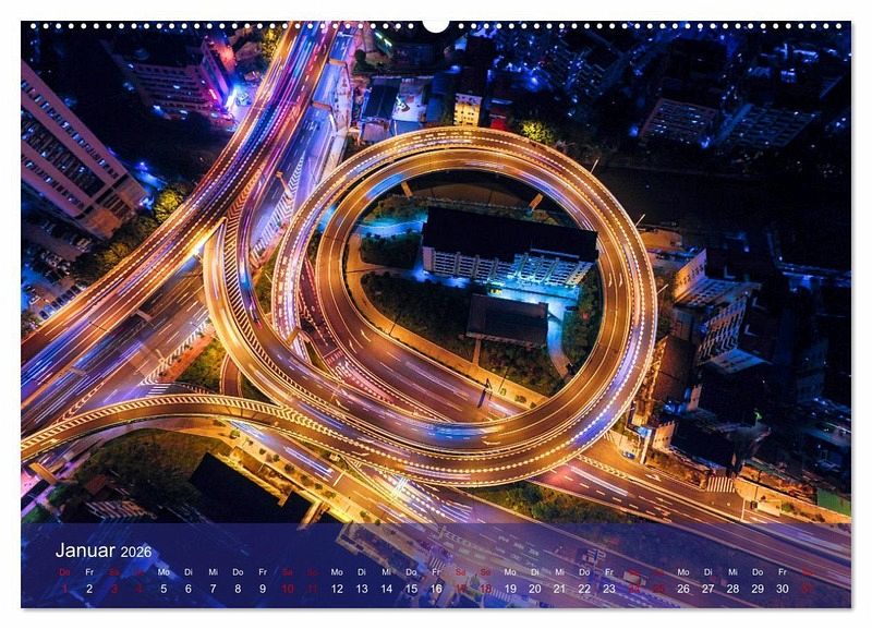 Der außergewöhnliche Kalender von Renate Utz fasziniert mit fantastischen Nachtaufnahmen beeindruckender Verkehrswege aus der Vogelperspektive. Die lichtdurchfluteten Kreuzungen und verworrenen Verkehrsschleifen aufwendiger Trassenführungen zeigen dem Betrachter eine futuristische Ansicht großstädtischer Architektur aus der Luft. Lassen auch sie sich Monat für Monat verzaubern vom surrealen Lichtstreifengewirr des urbanen Verkehrsdschungels verschiedener Megastädte. Das etwas andere Geschenk für alle, die das Ausgefallene und Besondere lieben.