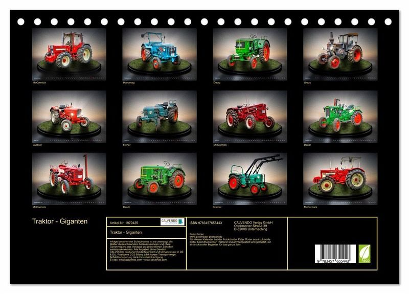 Für diesen Kalender hat der Fotokünstler Peter Roder ausdrucksvolle Bilder beeindruckender Traktoren zusammengestellt und gestaltet, ein eindrucksvoller Begleiter für das ganze Jahr.