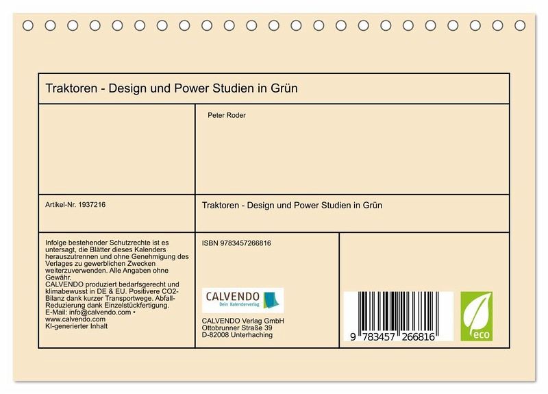 QUALITÄT - Hochwertiger Fotokalender mit 12 wunderschönen Motiven auf lichtbeständigem Bilderdruckpapier, robuste Spiralbindung.NACHHALTIG - deutliche Abfallreduzierung durch bedarfsgerechte Einzelstückfertigung, umweltfreundliches FSC-zertifiziertes Papier, Produktion in Deutschland, klimabewusste Logistik.PERFEKTES GESCHENK - Kalender für Freunde und Familie, für Kinder und Erwachsene, jung und alt, zu Weihnachten, Geburtstag oder zwischendurch.VIELFALT - Bildkalender in verschiedenen Formaten, z.B. DIN A5, DIN A4, DIN A3 sowie DIN A2. Ob Naturmotiv, Gemälde oder Fotos, ideal für ein persönliches Wohlfühlambiente.Innovative Landtechnik trifft kreativen Ingenieursgeist. von Autor(in): Peter Roder
