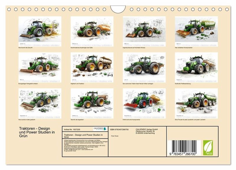 QUALITÄT - Hochwertiger Fotokalender mit 12 wunderschönen Motiven auf lichtbeständigem Bilderdruckpapier, robuste Spiralbindung mit Aufhängebügel.NACHHALTIG - deutliche Abfallreduzierung durch bedarfsgerechte Einzelstückfertigung, umweltfreundliches FSC-zertifiziertes Papier, Produktion in Deutschland, klimabewusste Logistik.PERFEKTES GESCHENK - Kalender für Freunde und Familie, für Kinder und Erwachsene, jung und alt, zu Weihnachten, Geburtstag oder zwischendurch.VIELFALT - Bildkalender in verschiedenen Formaten, z.B. DIN A5, DIN A4, DIN A3 sowie DIN A2. Ob Naturmotiv, Gemälde oder Fotos, ideal für ein persönliches Wohlfühlambiente.Innovative Landtechnik trifft kreativen Ingenieursgeist. von Autor(in): Peter Roder