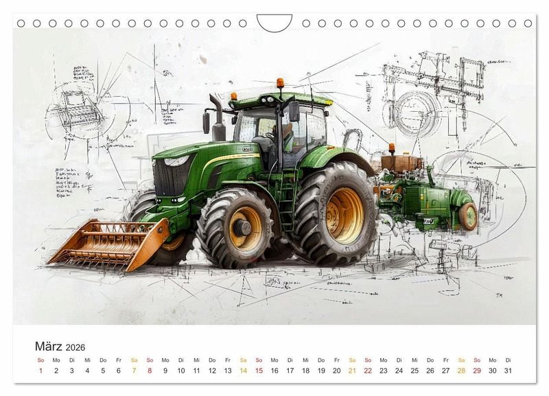 Innovative Landtechnik trifft kreativen Ingenieursgeist. Jedes KI-Bild präsentiert Ihnen die neueste Generation moderner, kraftvoller Traktoren - in markantem Grün und mit beeindruckender Technik. Doch das Besondere: Jeder Traktor ist umgeben von originalen Konstruktionsskizzen und handschriftlichen Notizen, die den kreativen Entstehungsprozess sichtbar machen. Es wirkt, als hätten die Ingenieure eben erst über die perfekte Form, die optimale Leistung und die modernste Digitalisierung nachgedacht. Diese Traktoren sind nicht nur Maschinen, sondern hochentwickelte, smarte Kraftpakete. Ein Muss für Technik-Enthusiasten, Landmaschinen-Fans und alle, die eine Leidenschaft für moderne Agrartechnik haben.