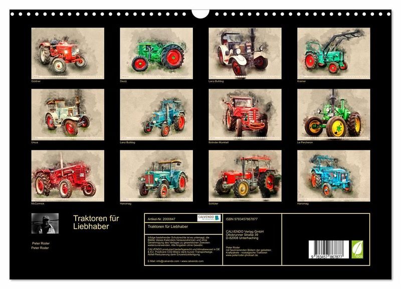 QUALITÄT - Hochwertiger Fotokalender mit 12 wunderschönen Motiven auf lichtbeständigem Bilderdruckpapier, robuste Spiralbindung mit Aufhängebügel.NACHHALTIG - deutliche Abfallreduzierung durch bedarfsgerechte Einzelstückfertigung, umweltfreundliches FSC-zertifiziertes Papier, Produktion in Deutschland, klimabewusste Logistik.PERFEKTES GESCHENK - Kalender für Freunde und Familie, für Kinder und Erwachsene, jung und alt, zu Weihnachten, Geburtstag oder zwischendurch.VIELFALT - Bildkalender in verschiedenen Formaten, z.B. DIN A5, DIN A4, DIN A3 sowie DIN A2. Ob Naturmotiv, Gemälde oder Fotos, ideal für ein persönliches Wohlfühlambiente.Nostalgische Traktoren - geliebte Kraftpakete, die viele in ihren Bann ziehen von Autor(in): Peter Roder