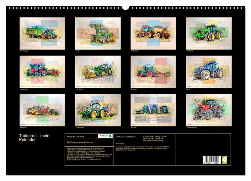 Für diesen Kalender hat der Fotokünstler Peter Roder beeindruckende Bilder imposanter Traktoren zusammengestellt und gestaltet, ein eindrucksvoller Begleiter für das ganze Jahr.