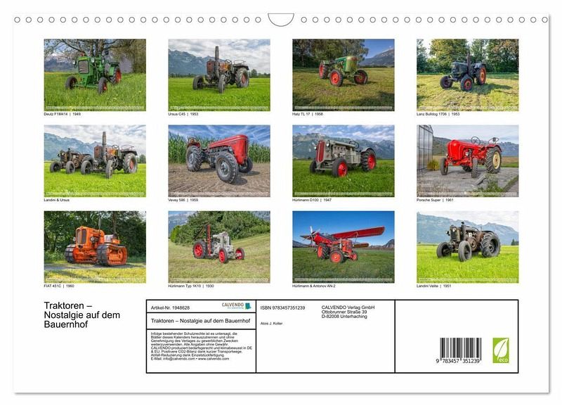 QUALITÄT - Hochwertiger Fotokalender mit 12 wunderschönen Motiven auf lichtbeständigem Bilderdruckpapier, robuste Spiralbindung mit Aufhängebügel.NACHHALTIG - deutliche Abfallreduzierung durch bedarfsgerechte Einzelstückfertigung, umweltfreundliches FSC-zertifiziertes Papier, Produktion in Deutschland, klimabewusste Logistik.PERFEKTES GESCHENK - Kalender für Freunde und Familie, für Kinder und Erwachsene, jung und alt, zu Weihnachten, Geburtstag oder zwischendurch.VIELFALT - Bildkalender in verschiedenen Formaten, z.B. DIN A5, DIN A4, DIN A3 sowie DIN A2. Ob Naturmotiv, Gemälde oder Fotos, ideal für ein persönliches Wohlfühlambiente.Nostalgische Maschinen für die Feldarbeit von Autor(in): Alois J. Koller