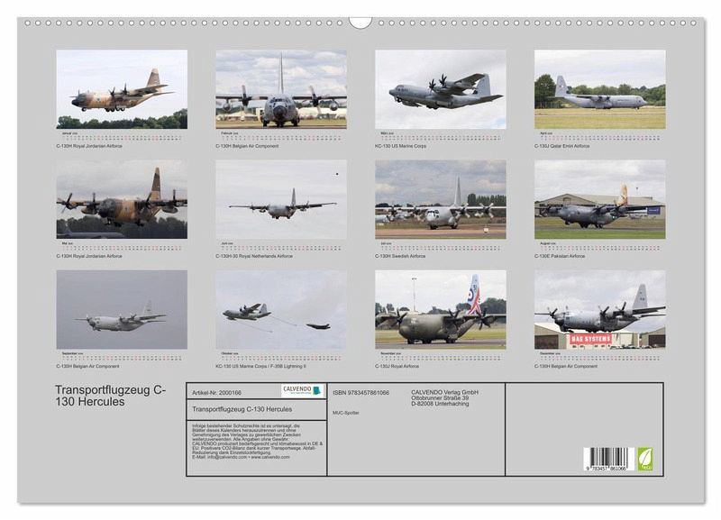 Abbildungen: Januar: C-130H Royal Jordanian Airforce Februar: C-130H Belgian Air Component März: KC-130 US Marine Corps April: C-130J Qatar Emiri Airforce Mai: C-130H Royal Jordanian Airforce Juni: C-130H-30 Royal