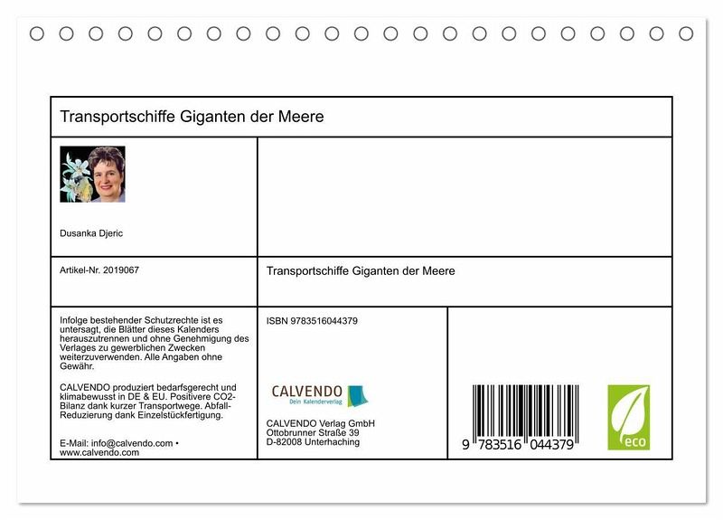 QUALITÄT - Hochwertiger Fotokalender mit 12 wunderschönen Motiven auf lichtbeständigem Bilderdruckpapier, robuste Spiralbindung.NACHHALTIG - deutliche Abfallreduzierung durch bedarfsgerechte Einzelstückfertigung, umweltfreundliches FSC-zertifiziertes Papier, Produktion in Deutschland, klimabewusste Logistik.PERFEKTES GESCHENK - Kalender für Freunde und Familie, für Kinder und Erwachsene, jung und alt, zu Weihnachten, Geburtstag oder zwischendurch.VIELFALT - Bildkalender in verschiedenen Formaten, z.B. DIN A5, DIN A4, DIN A3 sowie DIN A2. Ob Naturmotiv, Gemälde oder Fotos, ideal für ein persönliches Wohlfühlambiente.Verschiedene Transportschiffe von Autor(in): Dusanka Djeric