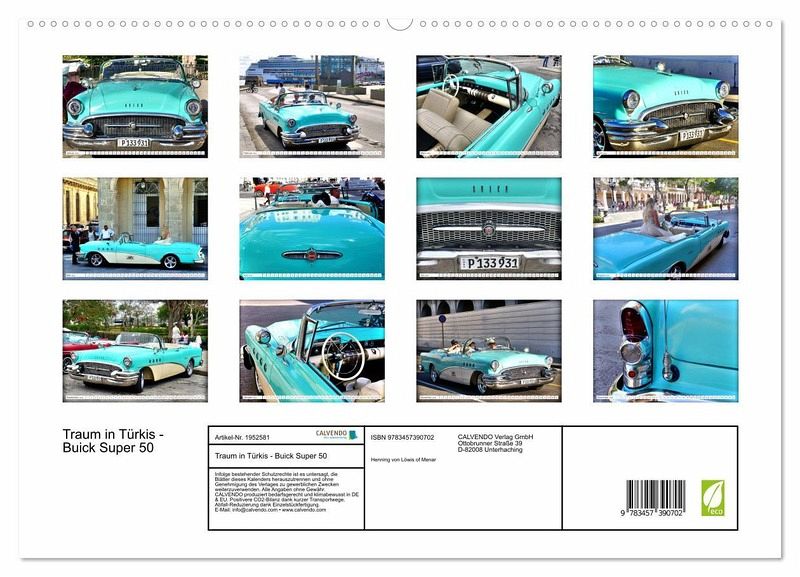 PREMIUM-LINIE - Brillanter Fotokalender mit 12 wunderschönen Motiven, Kunstdruck in Hochglanz in Museumsqualität.QUALITÄT - edle Materialien, stabile Rückwand mit 2 innovativen Einstecktaschen für eine optimale Präsentation an der Wand.NACHHALTIG - deutliche Abfallreduzierung durch bedarfsgerechte Einzelstückfertigung, umweltfreundliches FSC-zertifiziertes Papier, Produktion in Deutschland, klimabewusste Logistik.PERFEKTES GESCHENK - Kalender für Freunde und Familie, für Kinder und Erwachsene, jung und alt, zu Weihnachten, Geburtstag oder zwischendurch.Der US-Oldtimer Buick Super 50 von 1955 in Kuba von Autor(in): Henning von Loewis of Menar