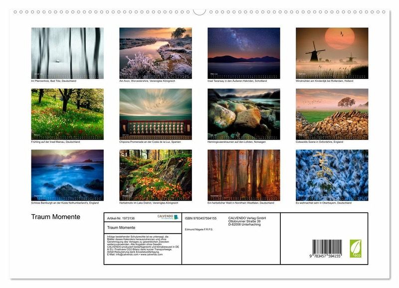 PREMIUM-LINIE - Brillanter Fotokalender mit 12 wunderschönen Motiven, Kunstdruck in Hochglanz in Museumsqualität.QUALITÄT - edle Materialien, stabile Rückwand mit 2 innovativen Einstecktaschen für eine optimale Präsentation an der Wand.NACHHALTIG - deutliche Abfallreduzierung durch bedarfsgerechte Einzelstückfertigung, umweltfreundliches FSC-zertifiziertes Papier, Produktion in Deutschland, klimabewusste Logistik.PERFEKTES GESCHENK - Kalender für Freunde und Familie, für Kinder und Erwachsene, jung und alt, zu Weihnachten, Geburtstag oder zwischendurch.Fotografische Momente zum Träumen von Edmund Nägele F.R.P.S. von Autor(in): Edmund Nägele