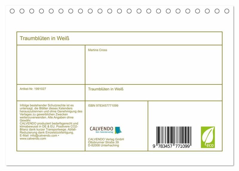 QUALITÄT - Hochwertiger Fotokalender mit 12 wunderschönen Motiven auf lichtbeständigem Bilderdruckpapier, robuste Spiralbindung.NACHHALTIG - deutliche Abfallreduzierung durch bedarfsgerechte Einzelstückfertigung, umweltfreundliches FSC-zertifiziertes Papier, Produktion in Deutschland, klimabewusste Logistik.PERFEKTES GESCHENK - Kalender für Freunde und Familie, für Kinder und Erwachsene, jung und alt, zu Weihnachten, Geburtstag oder zwischendurch.VIELFALT - Bildkalender in verschiedenen Formaten, z.B. DIN A5, DIN A4, DIN A3 sowie DIN A2. Ob Naturmotiv, Gemälde oder Fotos, ideal für ein persönliches Wohlfühlambiente.Blütenträume in weiß von Autor(in):Martina Cross