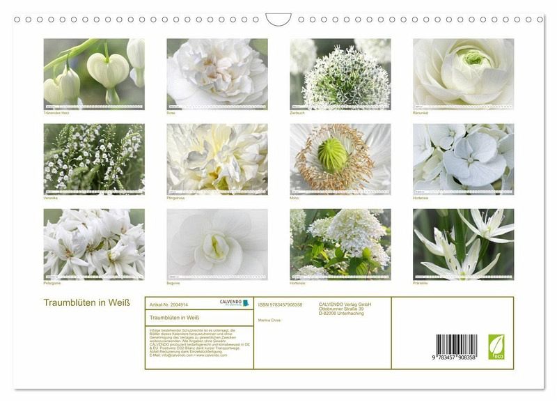 QUALITÄT - Hochwertiger Fotokalender mit 12 wunderschönen Motiven auf lichtbeständigem Bilderdruckpapier, robuste Spiralbindung mit Aufhängebügel.NACHHALTIG - deutliche Abfallreduzierung durch bedarfsgerechte Einzelstückfertigung, umweltfreundliches FSC-zertifiziertes Papier, Produktion in Deutschland, klimabewusste Logistik.PERFEKTES GESCHENK - Kalender für Freunde und Familie, für Kinder und Erwachsene, jung und alt, zu Weihnachten, Geburtstag oder zwischendurch.VIELFALT - Bildkalender in verschiedenen Formaten, z.B. DIN A5, DIN A4, DIN A3 sowie DIN A2. Ob Naturmotiv, Gemälde oder Fotos, ideal für ein persönliches Wohlfühlambiente.Blütenträume in weiß von Autor(in): Martina Cross
