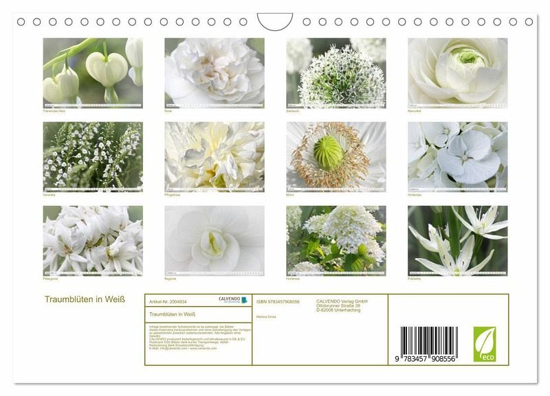QUALITÄT - Hochwertiger Fotokalender mit 12 wunderschönen Motiven auf lichtbeständigem Bilderdruckpapier, robuste Spiralbindung mit Aufhängebügel.NACHHALTIG - deutliche Abfallreduzierung durch bedarfsgerechte Einzelstückfertigung, umweltfreundliches FSC-zertifiziertes Papier, Produktion in Deutschland, klimabewusste Logistik.PERFEKTES GESCHENK - Kalender für Freunde und Familie, für Kinder und Erwachsene, jung und alt, zu Weihnachten, Geburtstag oder zwischendurch.VIELFALT - Bildkalender in verschiedenen Formaten, z.B. DIN A5, DIN A4, DIN A3 sowie DIN A2. Ob Naturmotiv, Gemälde oder Fotos, ideal für ein persönliches Wohlfühlambiente.Blütenträume in weiß von Autor(in): Martina Cross