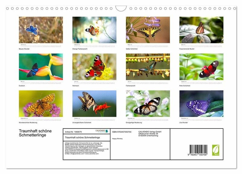 Wunderschöne Farben und Muster. Dafür sind Schmetterlinge bekannt. Diese Kalender zeigt 12 faszinierende Aufnahmen von heimischen und exotischen Schmetterlingen.